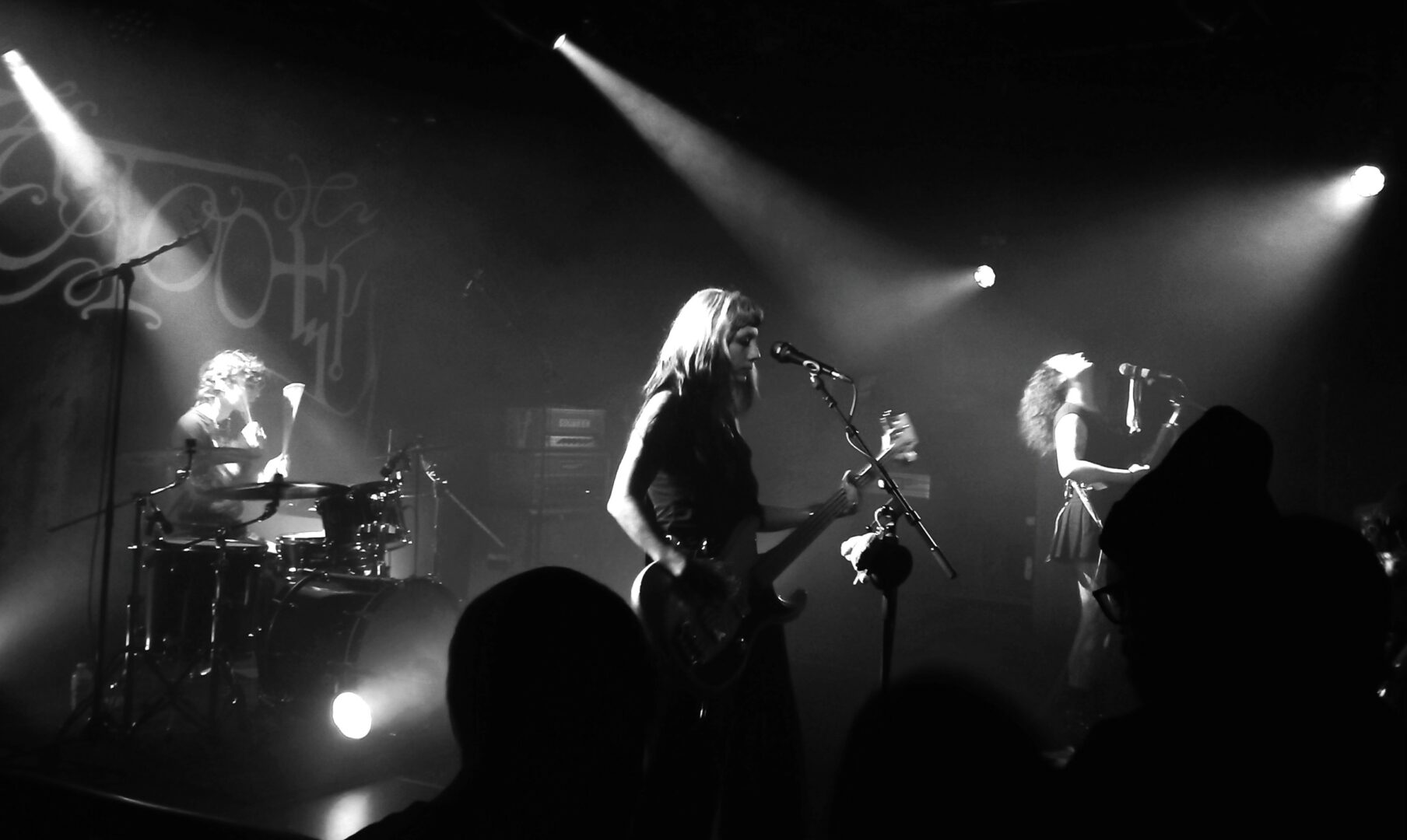 Il est 21h15 lorsque le trio de FAETOOTH monte sur scène face à des premiers rangs bien serrés. Après une intro aux airs de Requiem de Mozart (mais qui n’est pas le Requiem de Mozart, et encore moins un extrait de Mozart l’Opéra Rock, d’ailleurs on applique quel taux de taxation pour ça ?), les trois jeunes femmes entament le set sur fond d’une base grésillante et d’un chant lancinant auquel font écho des cris gutturaux. Le son est puissant… bien que trop embrumé, tout du moins en début de set. Les choses s’améliorent grandement ensuite. Les membres de Faetooth proposent ce qu’elles qualifient de « fairy-doom », à mi-chemin entre un metal et un shoegaze lent.